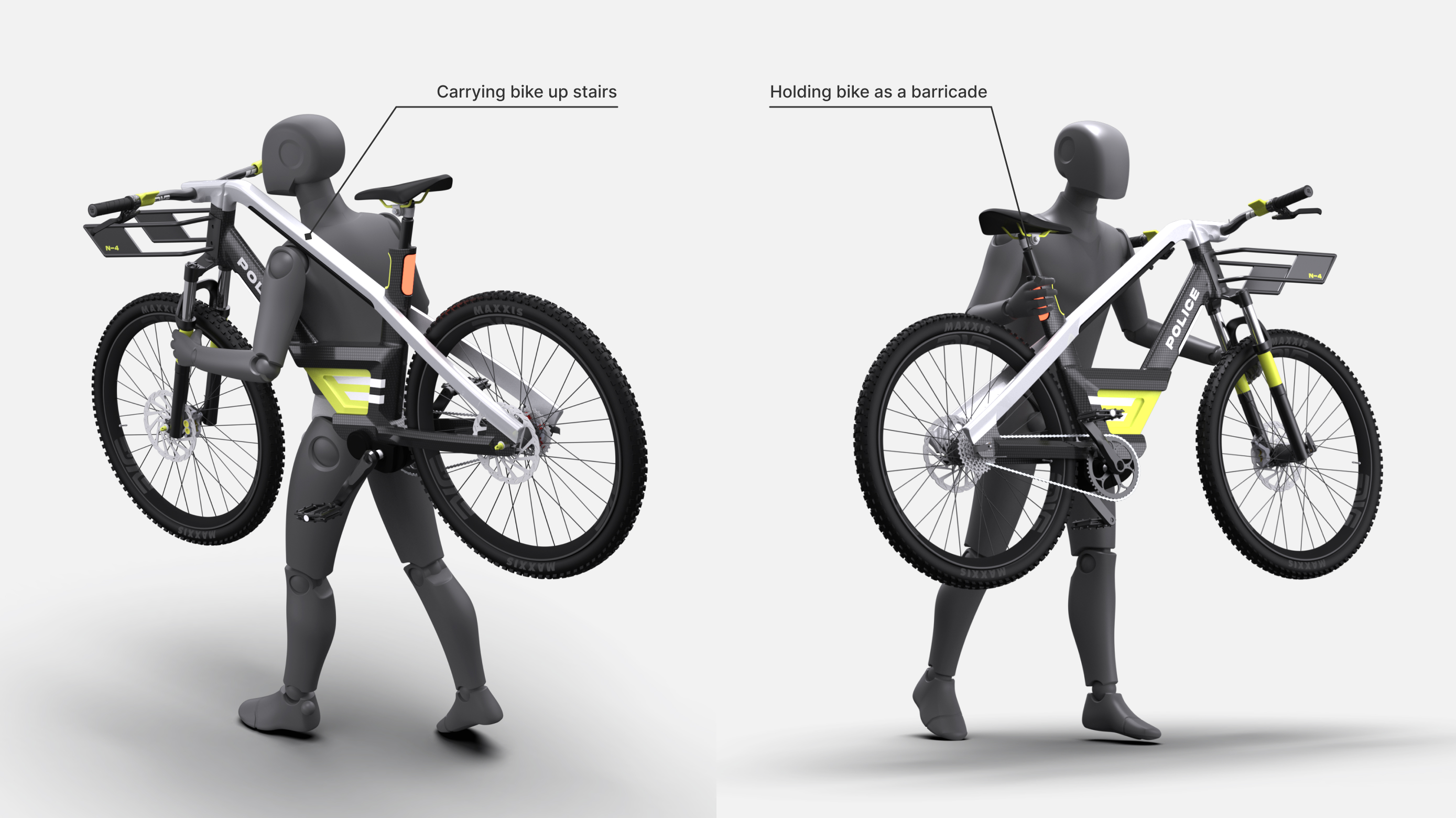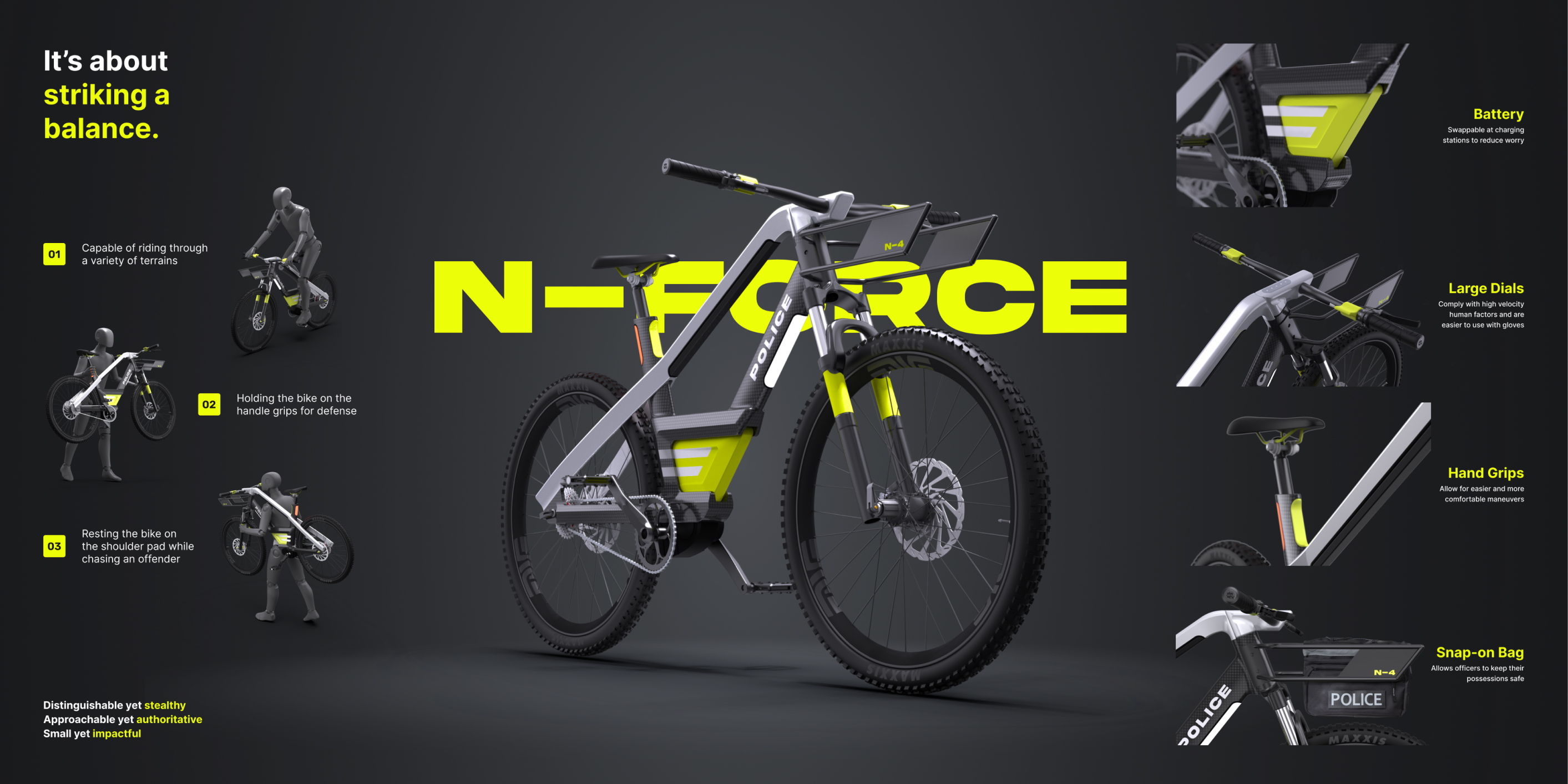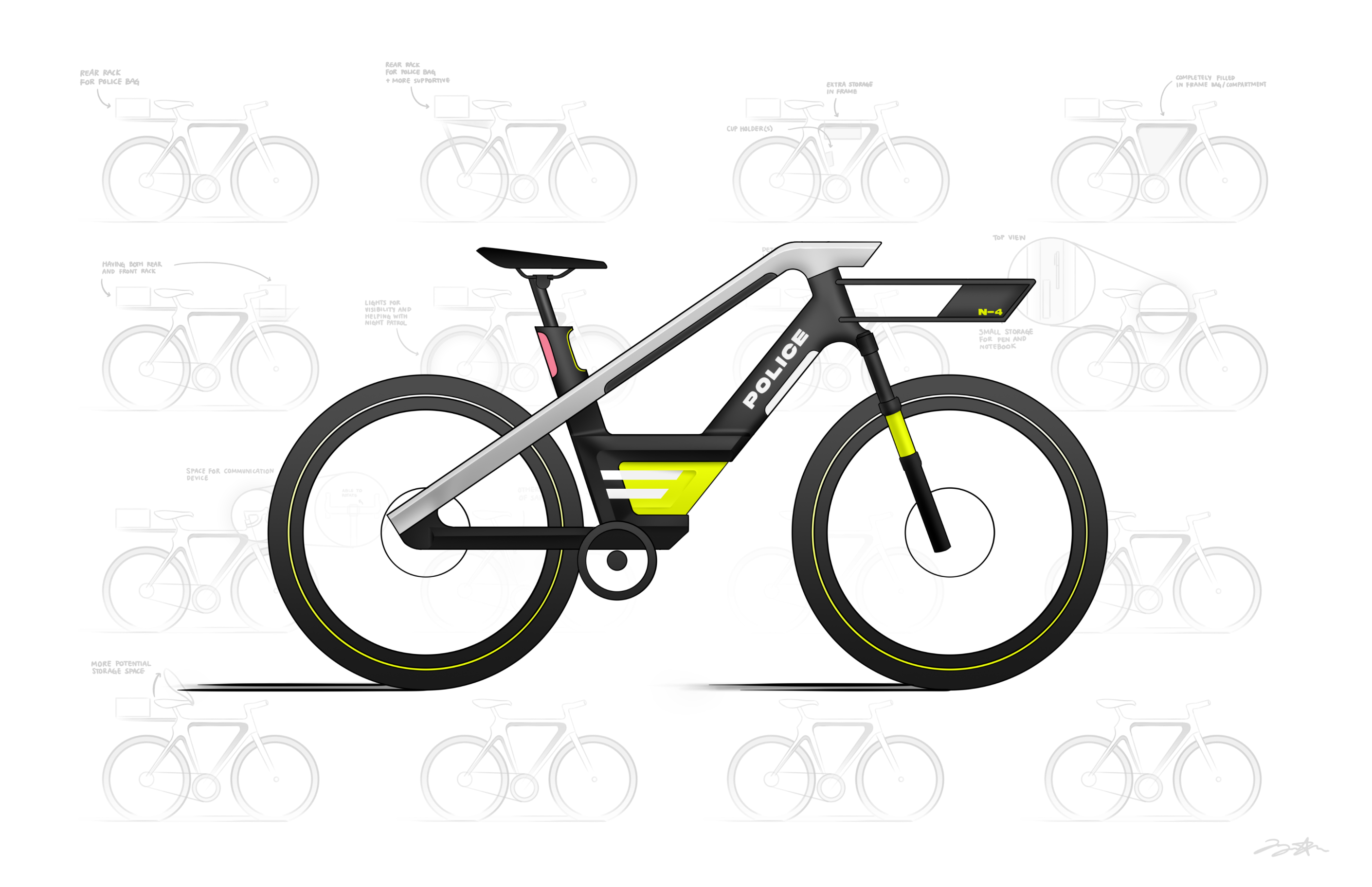 The main challenge was creating a bike that was an extension of the police officer and not just another transportation method. To tackle this, we implemented features to assist daily tasks, providing speed and comfort.